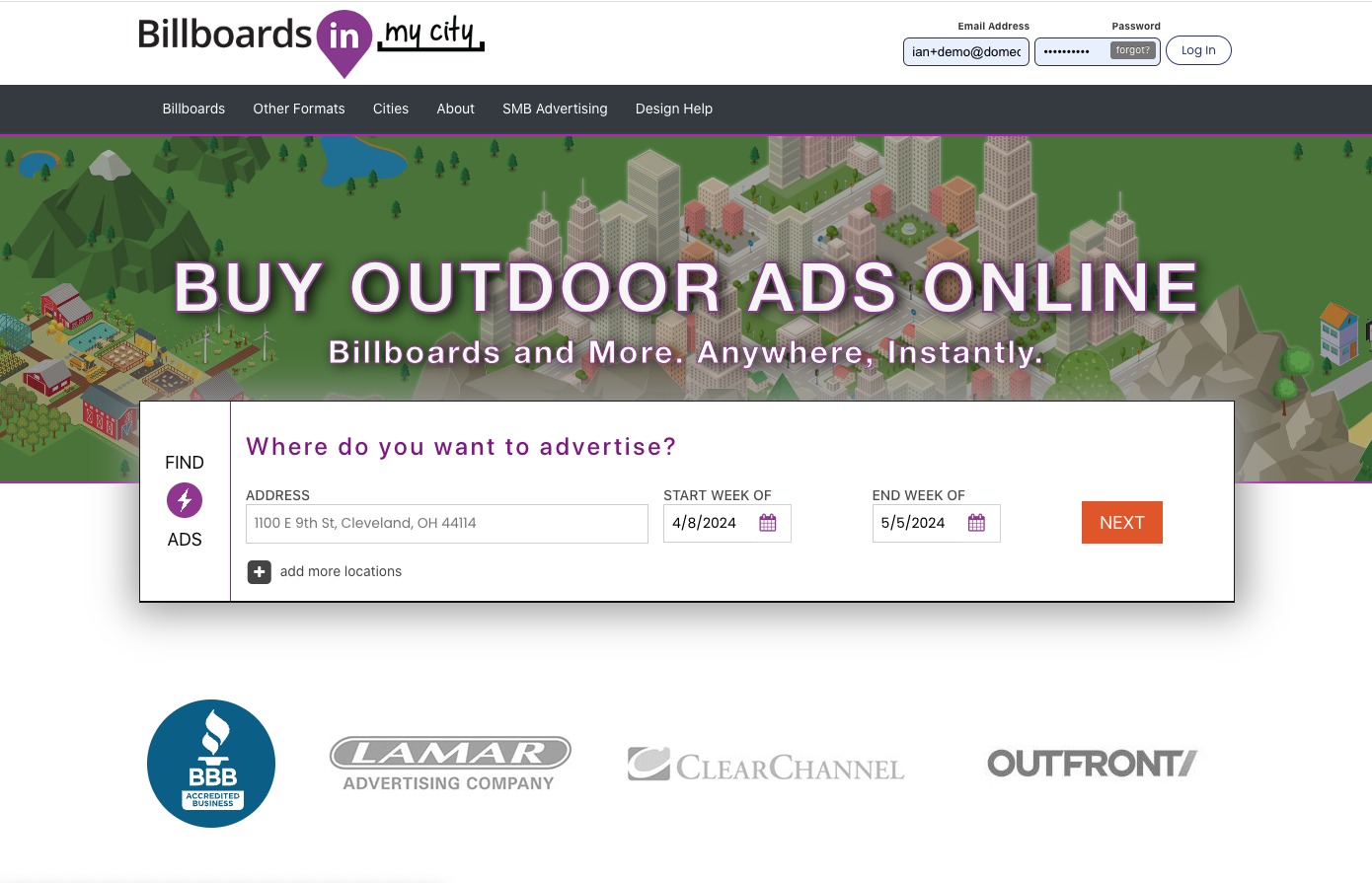 Served as primary product manager, designer and user researcher for BillboardsIn.
